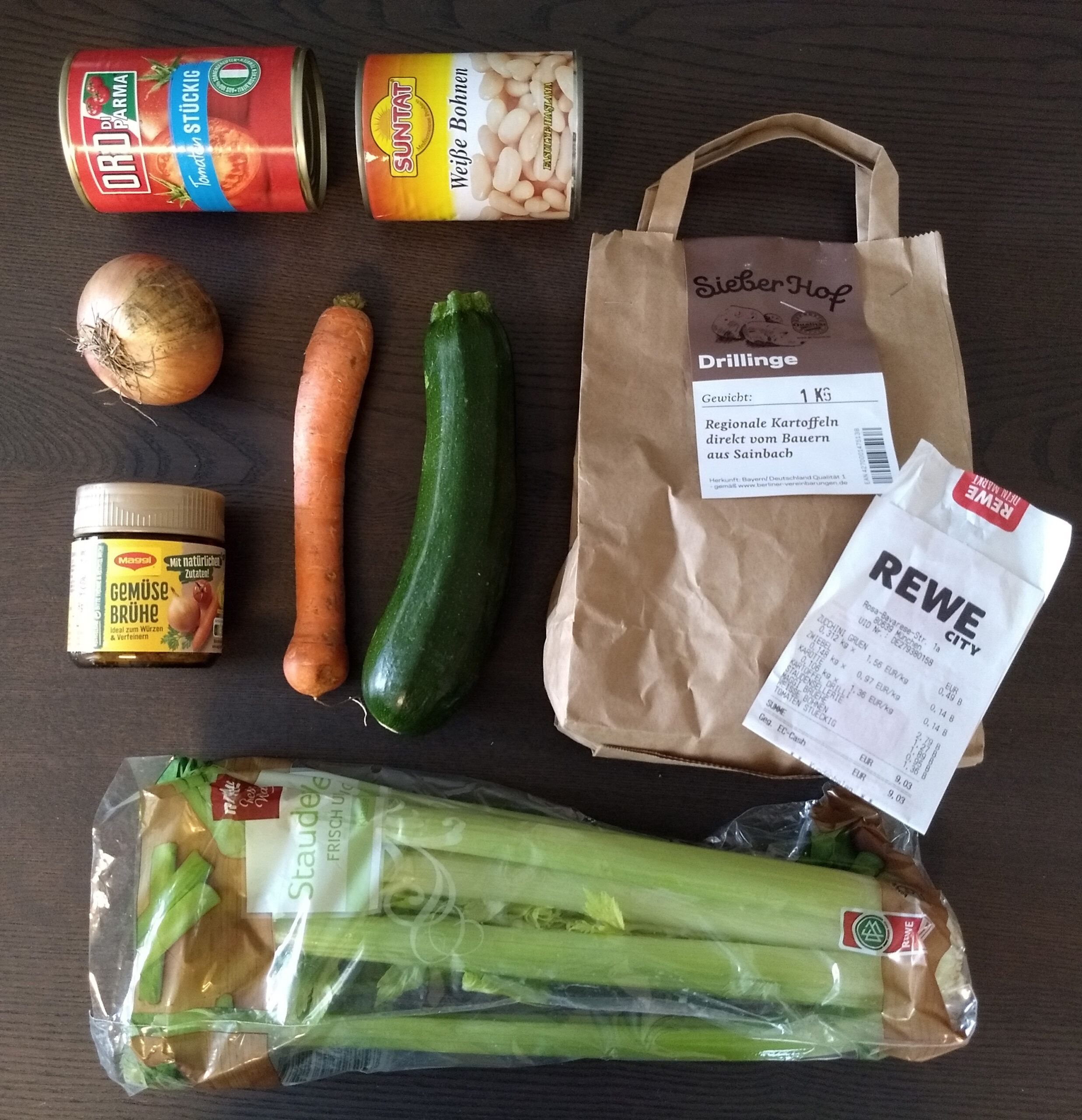 Für eine „Kochtüte“ mit Zutaten für Schnelle Minestrone haben wir nur €9,03 ausgegeben!