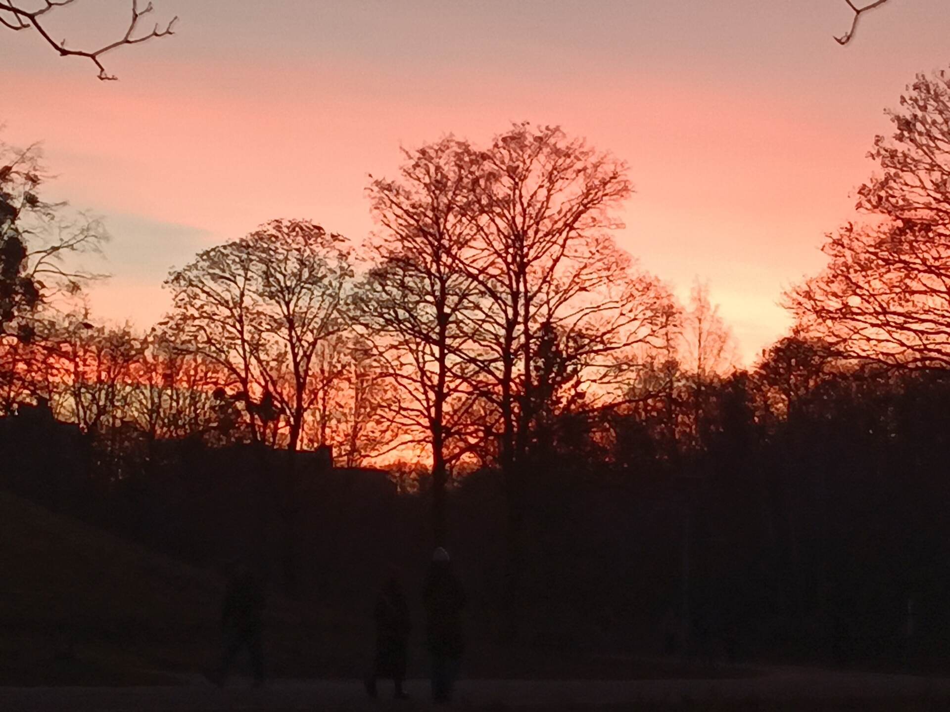 Vom Bavariapark spazierten wir gemütlich zum Westpark. Wir konzentrierten uns auf den östlichen Teil, langsam brach die Dämmerung herein und der Himmel verfärbte sich rot. Am Weg entdeckten wir einen mit Weihnachtskugeln und anderer weihnachtlichen Deko geschmückten Baum, was bei uns große Freude hervorrief. Alle waren sich einig, dass es toll ist, bei einbrechender Dunkelheit in einem Park zu sein. Stirnlampen benötigten wir nicht, da die Wege sehr gut beleuchtet sind.