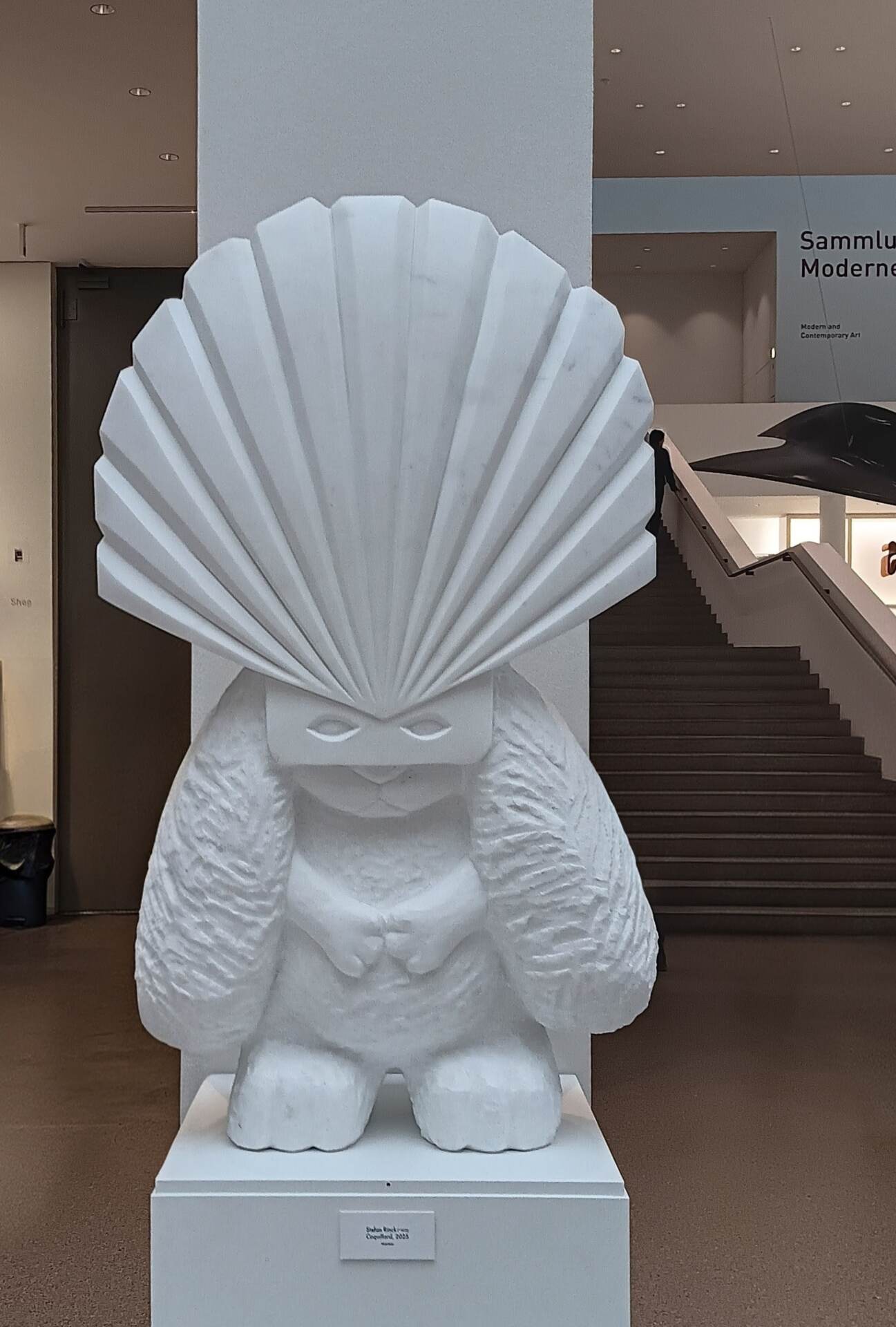 Aber auch im Eingangsbereich gibt es viel zu sehen. Unter dem Namen „Der Alpen-Clan kehrt zurück“ stehen noch bis zum 19. April seltsame Figuren herum, die der Bildhauer Stefan Rinck aus Marmor, Granit, Sandstein und anderen Materialien erschaffte. Tipp: Einfach mal vorbeigehen … der Zutritt zum „Alpen-Clan“ ist kostenfrei.